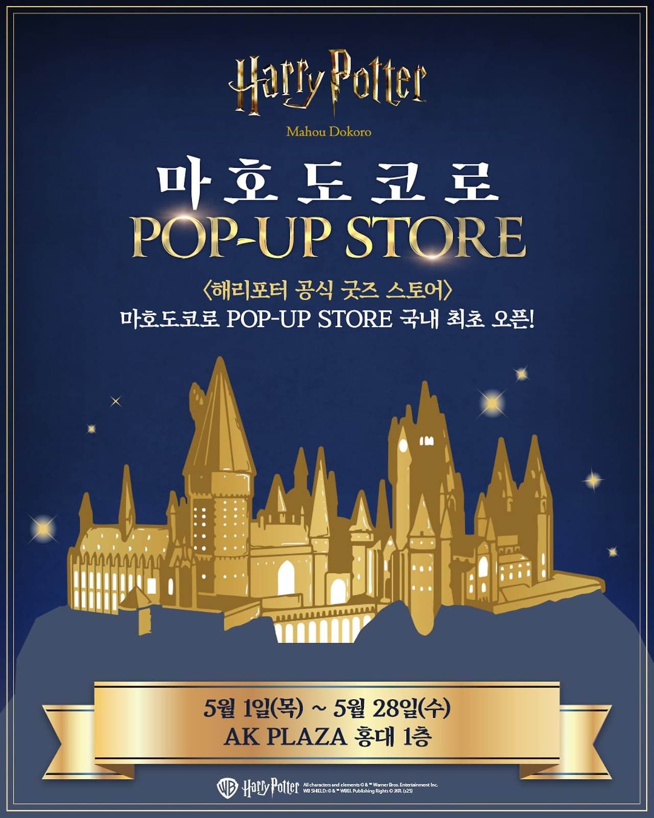 2025년 5월 1일부터 28일까지, 서울 마포구 양화로 188 AK플라자 홍대 1층에서 해리포터 공식 팝업스토어 ‘마호도코로’가 개최됩니다.